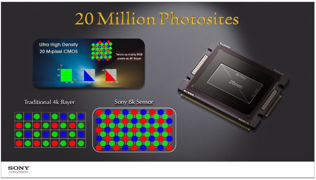Sony F65 is first camera that have diamond shape Bayer RGB (with additional Green subpixel - twice pixels like normal 4K) and then Samsung make something similar in OLED displays.